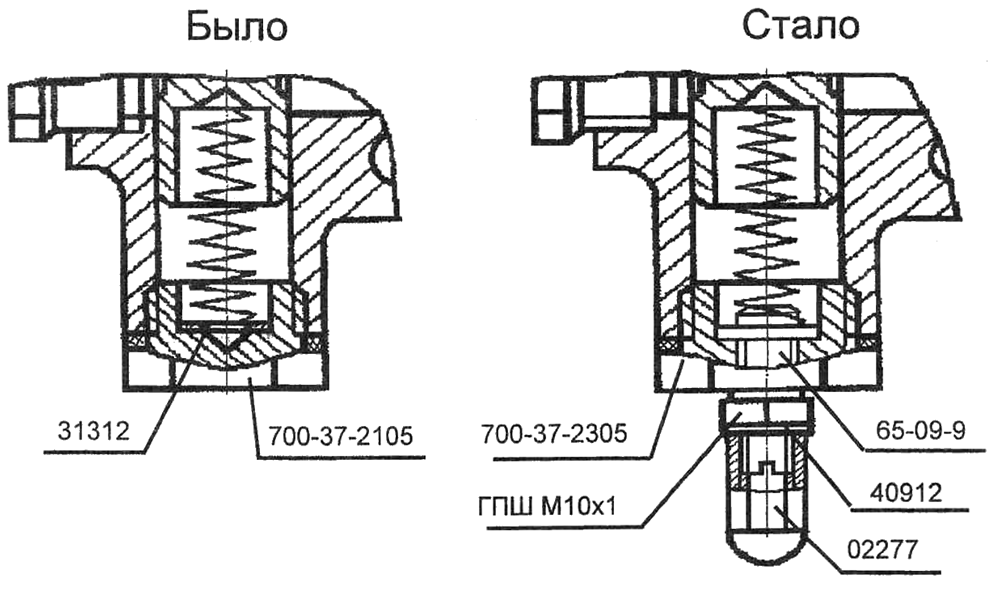 При этом пробка 700-37-2105 и регулировочные шайбы 31312 аннулированы.